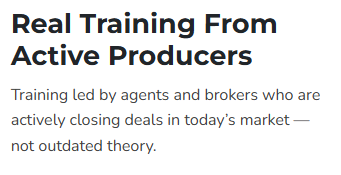 - New Agents → Get mentorship, hands-on training, and a roadmap to close your first 2–3 deals fast.